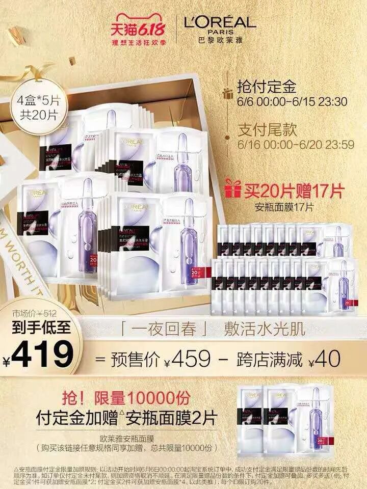 到手价只要419元/37片,还限量加赠2片安瓶面膜!