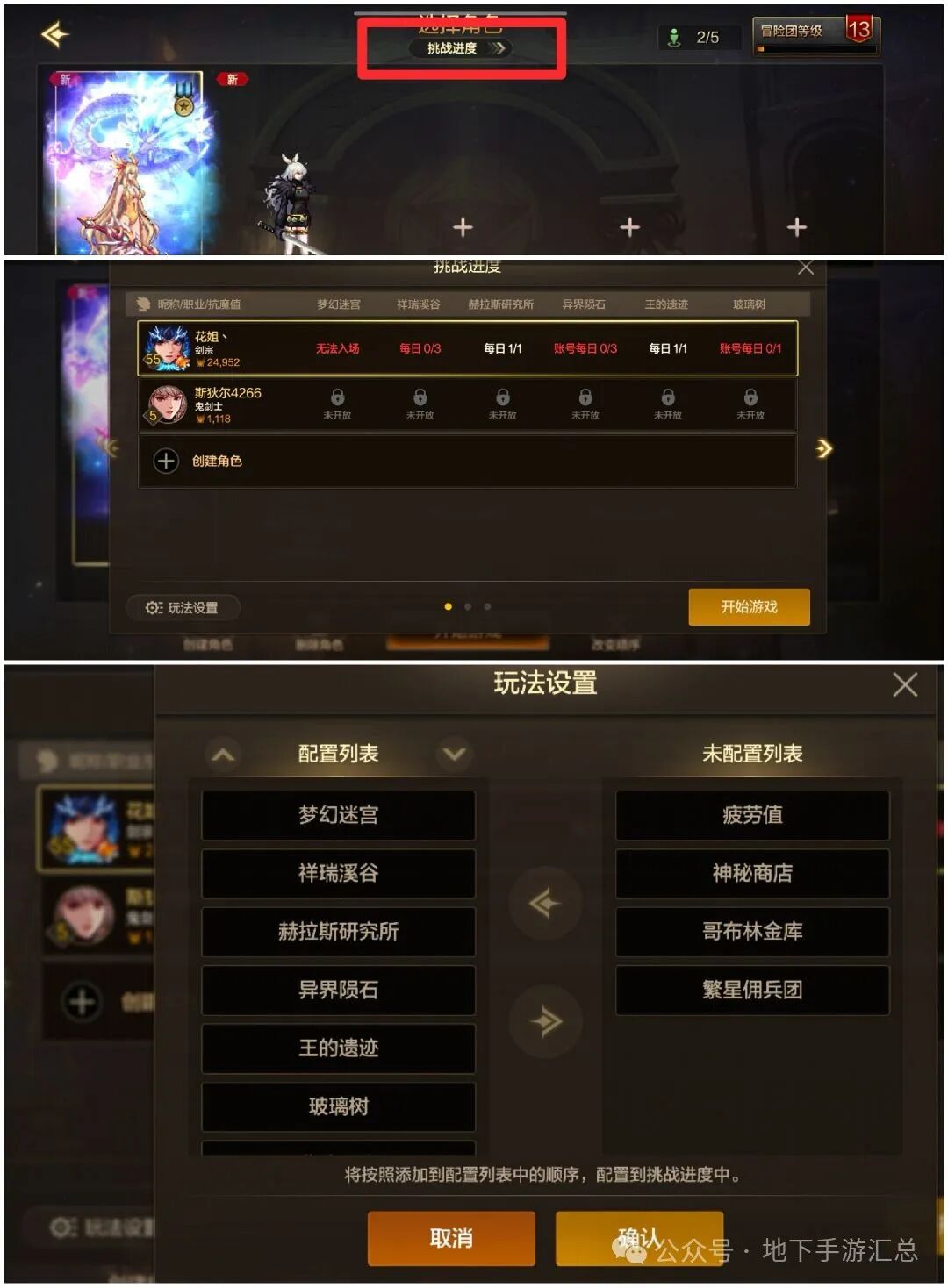 进入登录界面可以看到,有一个专属查看角色信息的对话框,里面详细记录了所有角色的参与副本情况,更加方便和快捷