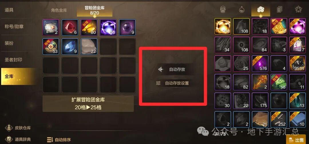在新版本中,打开仓库以后,在仓库和物品栏中央显示“一键放入”,同时还可以选中不想放去仓库的物品,这个优化使勇士们的操作更加便携,特别是对于有“收纳强迫症”的玩家来说简直就是福音。