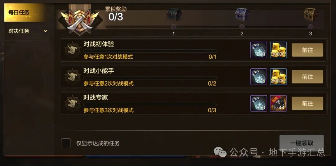 新版本上线以后,更新优化了决斗场任务,在保留原有玩法的同时,将每日任务改为“任意参加三场”,即可完成任务获取奖励,不在出现“硬控玩家”的情况。