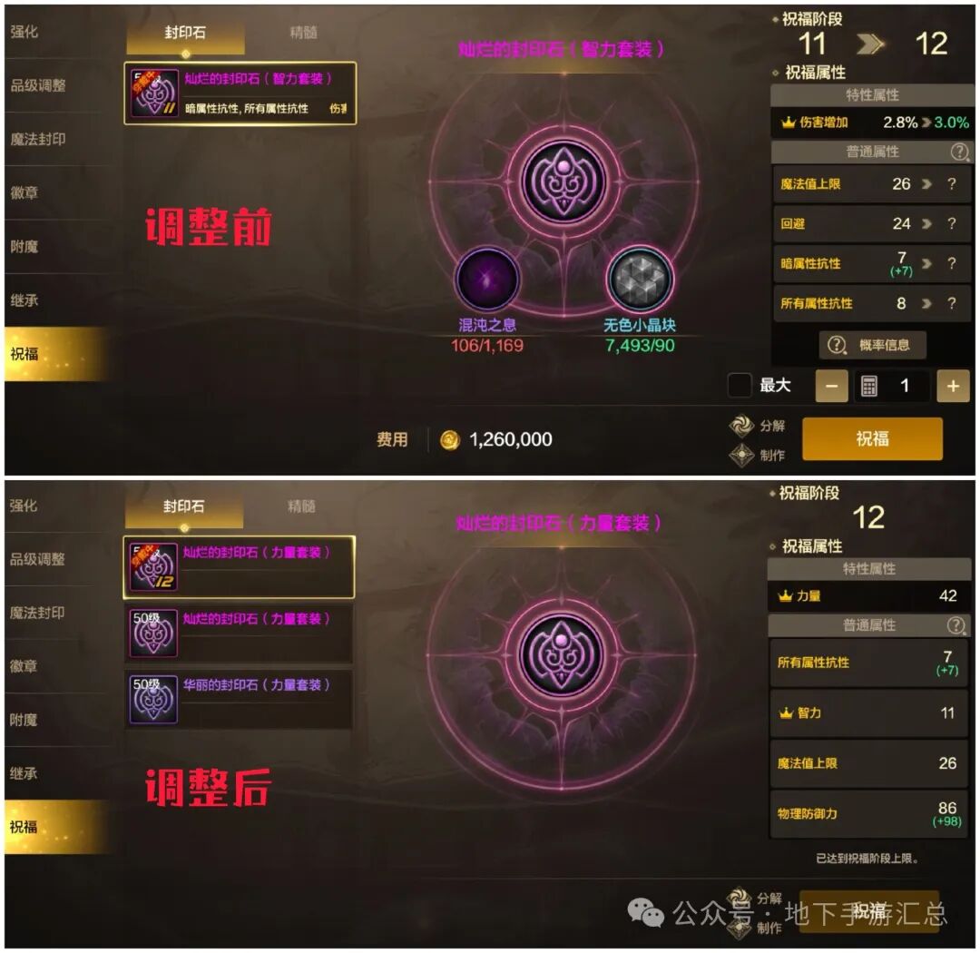 新版本将取消封印石滚动词条显示,只在最右侧显示词条相关信息,使界面更加整洁。