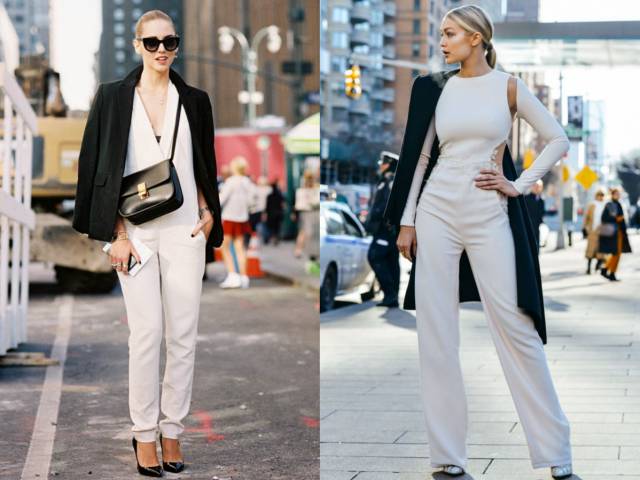 如果时间来得及,就配上一双高跟鞋,更能凸显出女性的知性与优雅,再加上连体裤的线条又给整个look的感觉加了一丝干练。