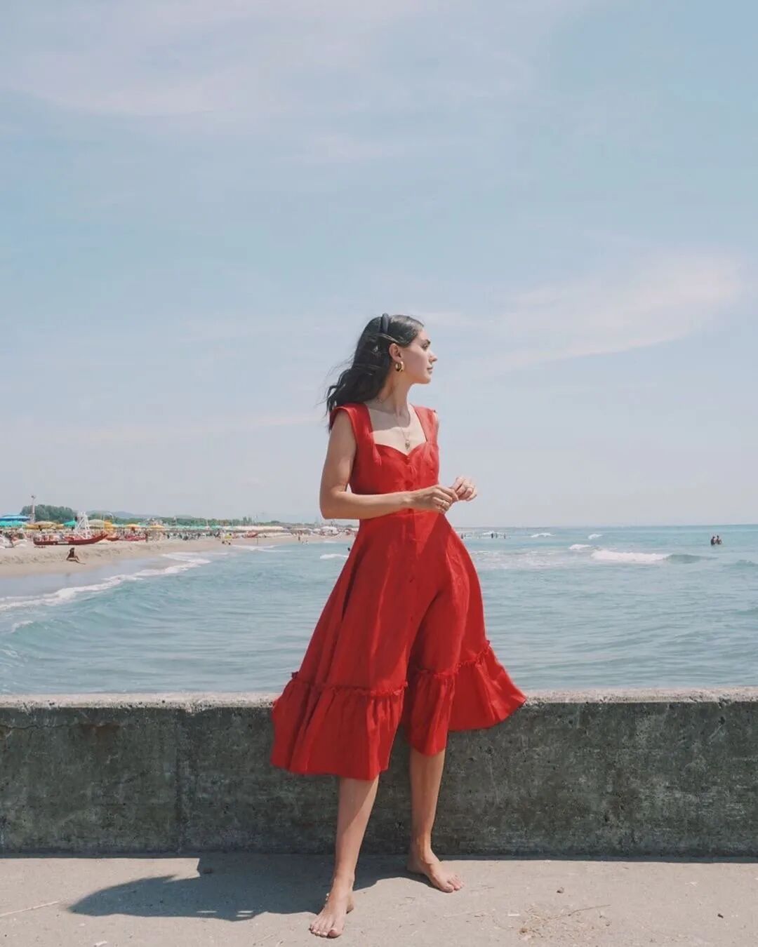今年各种彩色都好火,你们最爱哪个颜色?我尝试了很多彩色单品,蓝色、绿色、紫色、粉色……但如果问,哪个颜色在我心里不可替代?那一定是红色。红色不仅热情、明媚,还自带风情。我之前说过,能够驾驭红色,你的美丽才算完全炼成。▼应该不少女孩子都想拥有一条红裙子吧,红色连衣裙最经典。