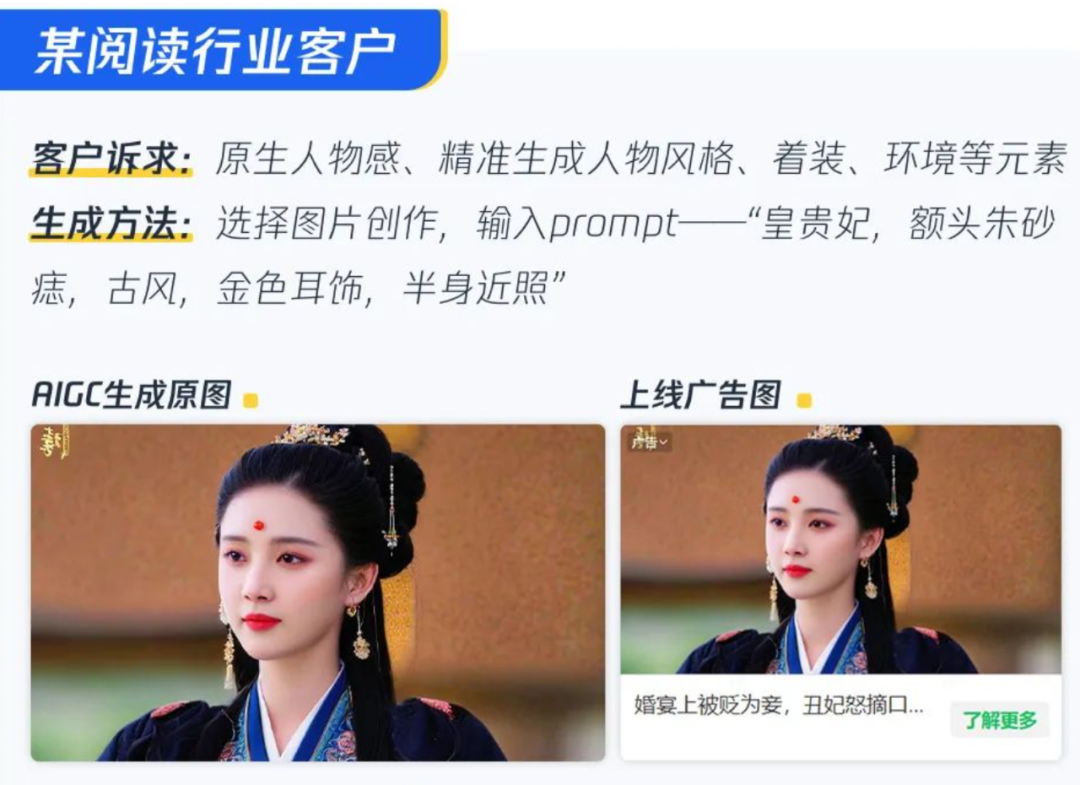 广告主和服务商只需要提供相对有限的提示,就能够低成本、批量化生成大量高质量的广告物料,实现创意产能的大幅提升。特别值得注意的是,除了降低物料生成费用和人力,妙思还能实现投放、创意和审核的一体化。由妙思的虚拟人脸图像就不需要获得肖像授权,同时也不存在被审核环节驳回的可能。换言之,妙思平台生成出的广告物料可以直接用于广告投放,它让广告投放的整个过程变得高度可控。